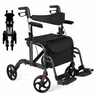 - Rollator Lichtgewicht en Opvouwbaar – Rolstoel – 2 in 1 - Ergonomische Zitting en Wandelstokhouder - Voor Binnen en Buiten - Zwart